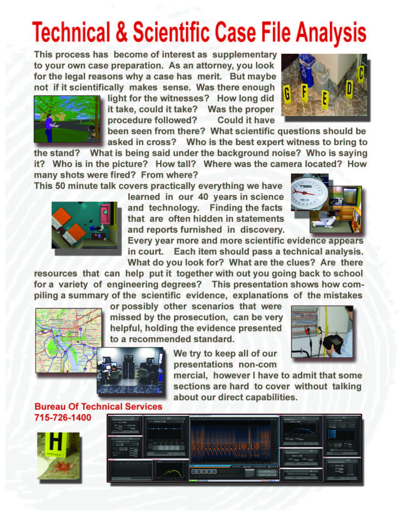 Electronics and mechanical engineering, fluid dynamics, physics, criminalistics, crime scene review